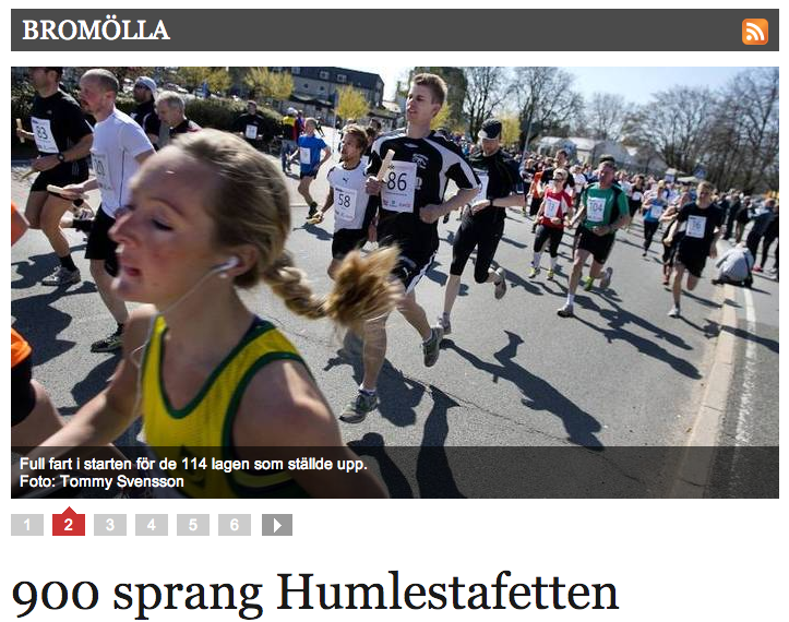 Några veckor innan Göteborgsvarvet blev jag hastigt och lustigt ”inslängd” i ännu ett tävlingssammanhang. Jag fick nämligen chansen att representera fruns stafettlag i den hyfsat lokala Humlestafetten runt vackra Ivösjön. En stafett som jag även deltog i under 2012, då under Anderssons frisörsalongs fana. Samma sträcka som då, den första på knappt åtta kilometer. Enda minnet jag hade av den var att det var grisjobbigt. Och det var det. Verkligen. Kändes dock inte riktigt lika illa i år. Kanske för att ”lidandet” blev dryga minuten kortare denna gång. Resultatet visade en tid på i snitt på 4:00 per kilometer vilket var bättre än jag vågat hoppas på, jag som nästan enkom sprungit långt och långsamt veckorna innan. Riktigt kul!